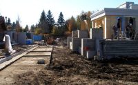 POUR. The forms and rebar for the main slab of the platform are readied.
